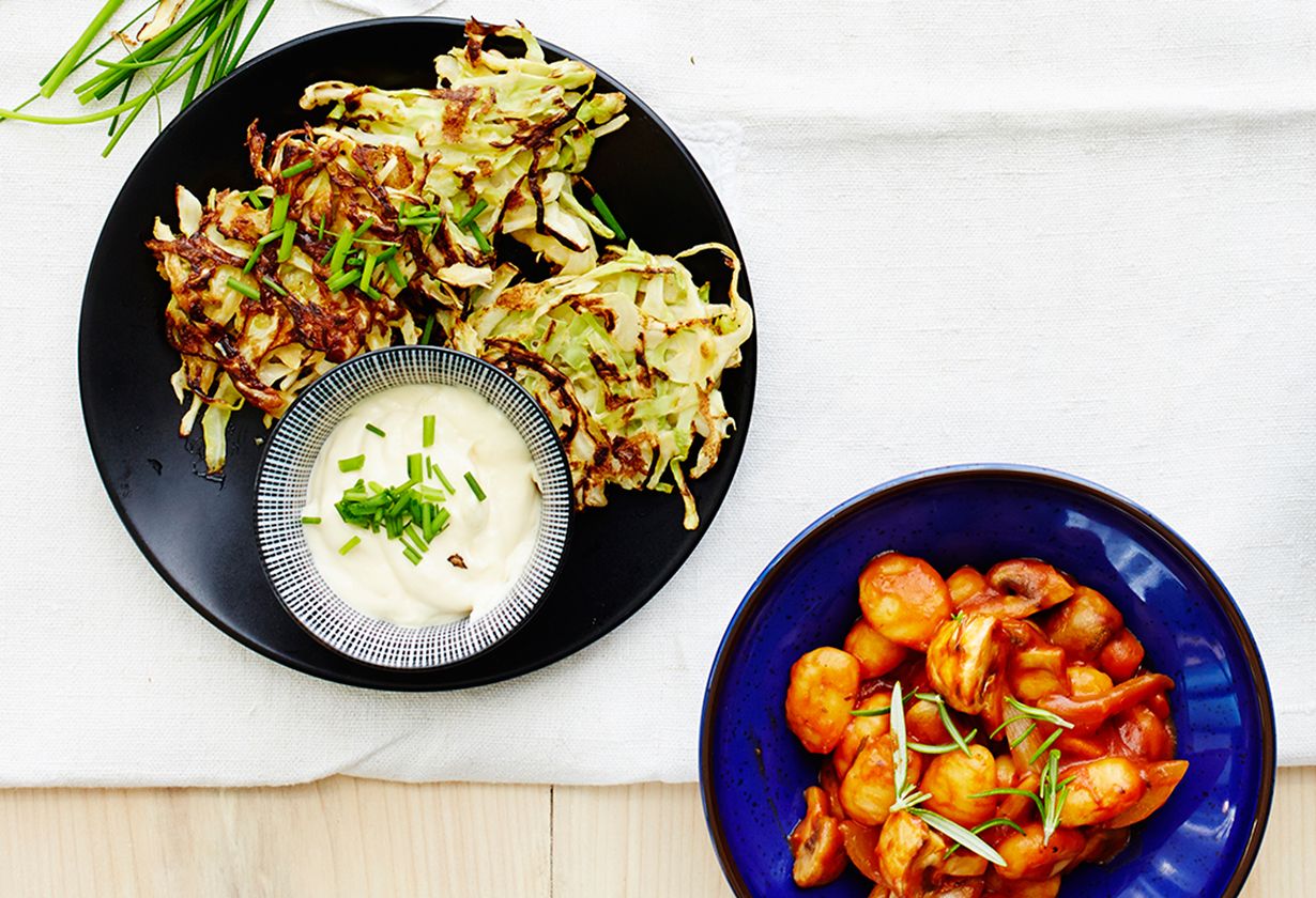 - Riko munat kulhoon. Lisää joukkoon jauhot ja soijakastike. Sekoita tasaiseksi. Lisää kaali ja ruohosipuli.