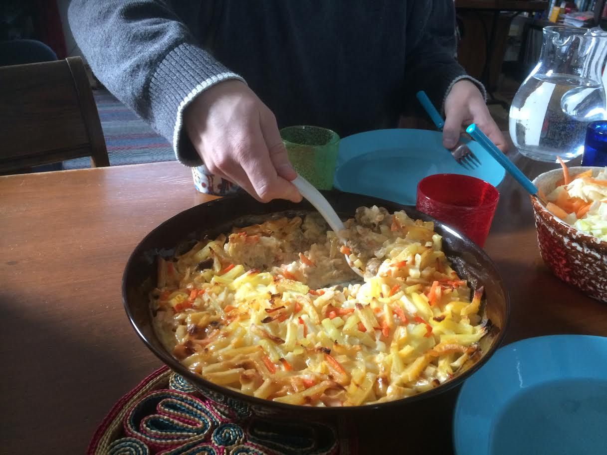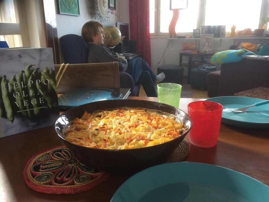 Poika aloitti muistelemalla kuinka inhosi koulussa aina laatikkoruokia. En vielä kertonut, että sitä on nytkin tarjolla. He päätyivät pohtimaan, että äidin ruoat olivat aina tosi helppoja, nopeita ja yksinkertaisia. Miettivät ehkä mielessään, että tylsiäkin. Vieläkään he eivät tienneet saavansa nytkin helppoa ja nopeaa. He ymmärsivät kyllä nyt aikuisina hyvin, että kun äiti hakee nälkäiset lapset päiväkodista niin täytetyille canneloneille ei ole aikaa. Keitto valmistuu nopeammin.
