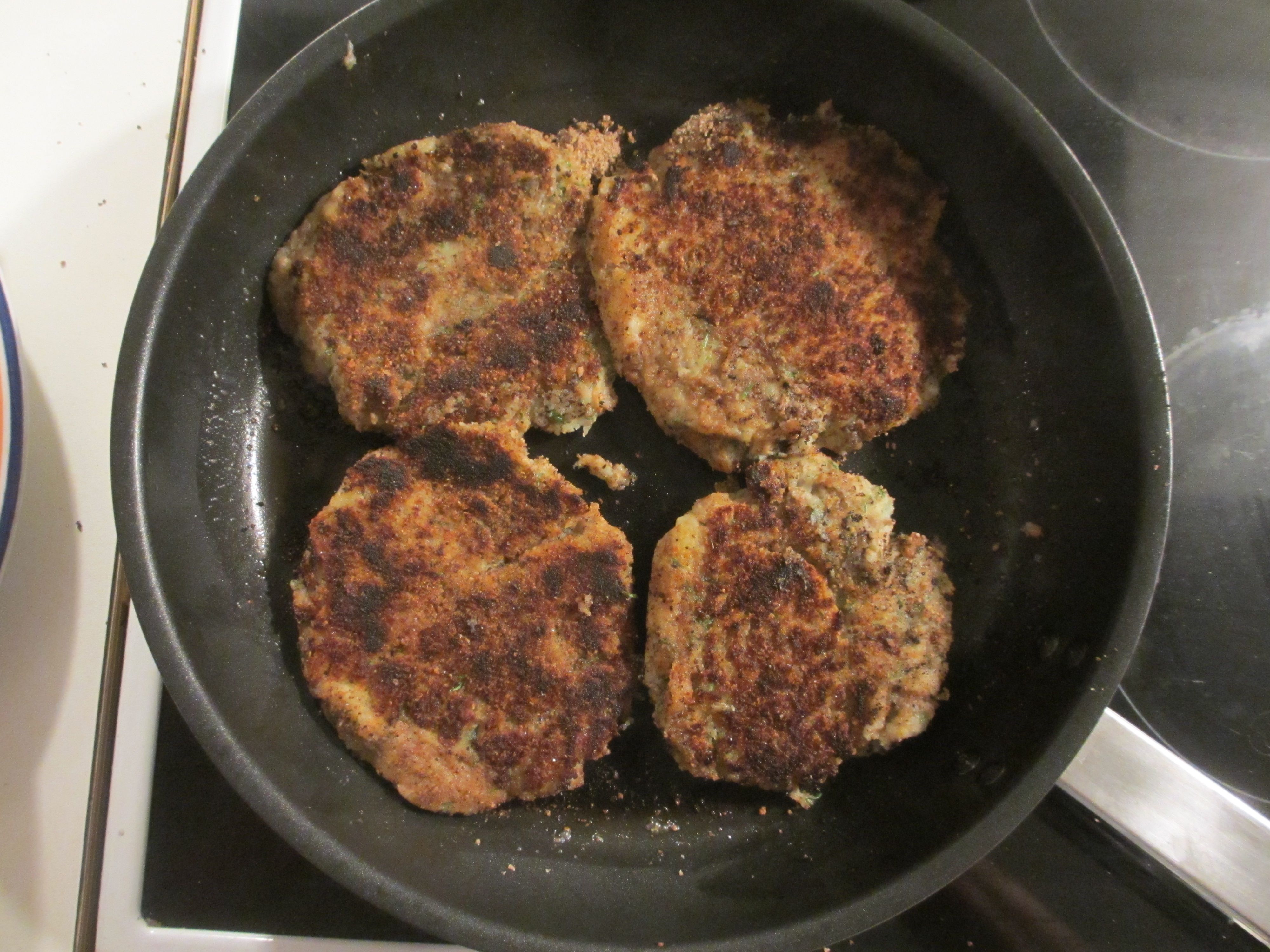 Perunapihvit onnistuivat mainiosti. Otin vinkistä vaarin ja käytin edellisenä päivänä tehtyä muusia. Siitä tuli sen verran tiukkaa tavaraa, että jätin vehnäjauhot pois – hyvin pysyivät pihvit kasassa. Paistamiseen käytin ruiskorppujauhoja, koska niissä on minusta enemmän makua kuin tavallisissa.