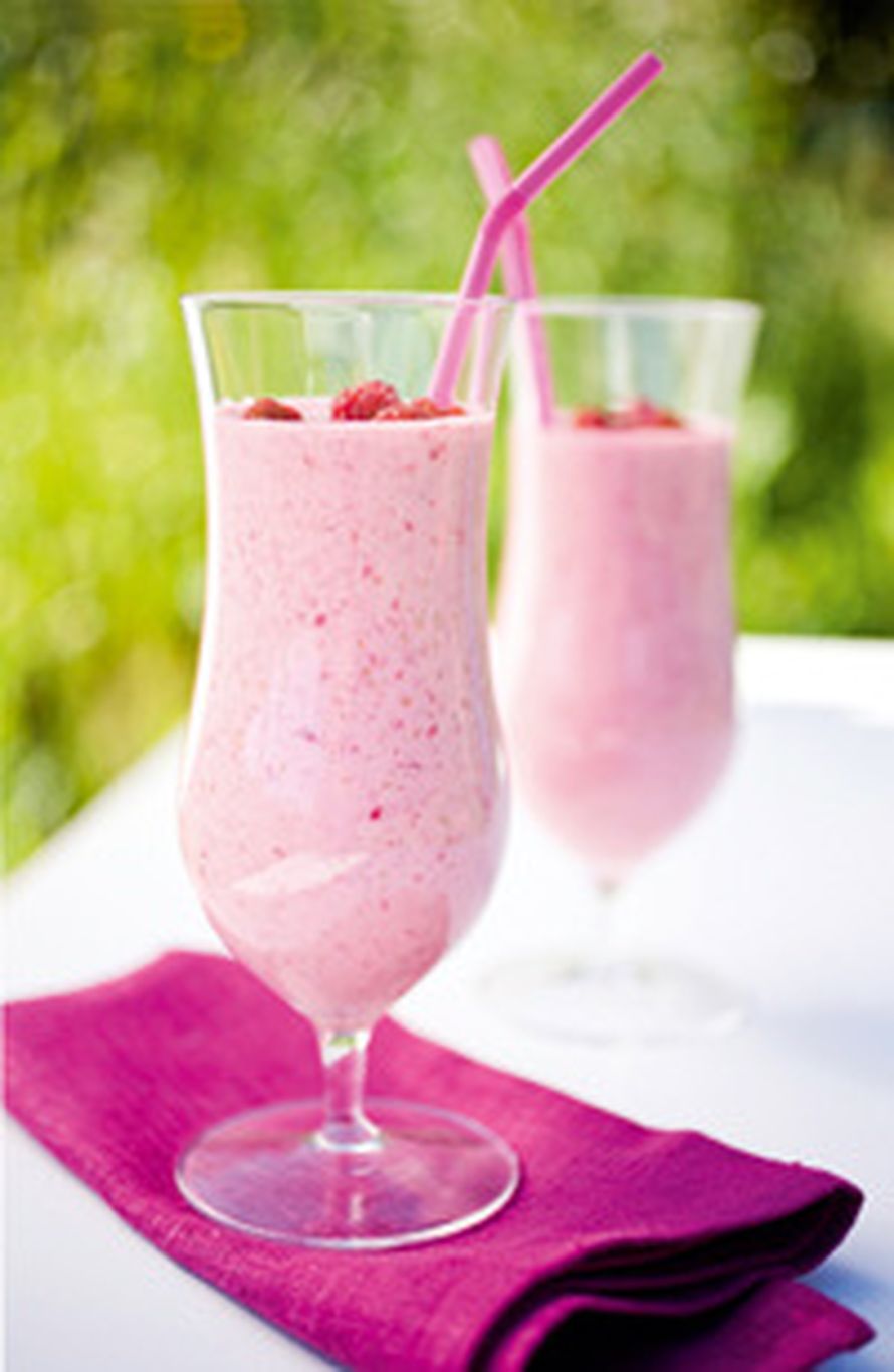 - Kaada laseihin ja koristele vadelmilla. Tarjoa heti jälkiruokana tai raikkaana välipalana.