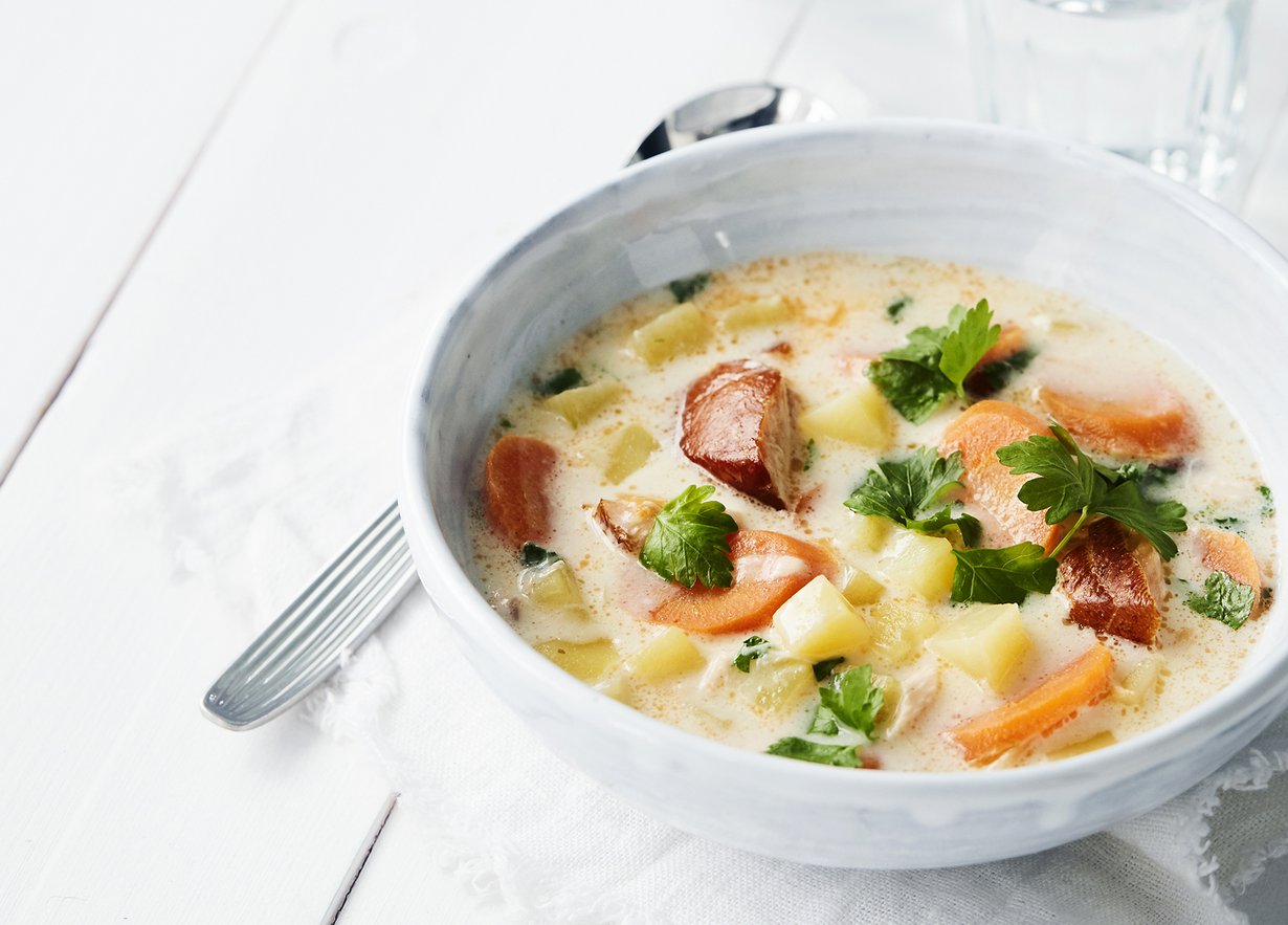Vinkki! Kokeile maustettua ruokakermaa. Savulohikeittoon sopii esimerkiksi ruokakerma valkoviini & tilli.