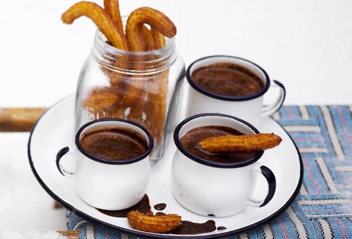 Churro on espanjalainen uppopaistettu pitkä munkkimainen leivonnainen, joka on levinnyt myös latinalaiseen Amerikkaan. Churrot kastetaan upean täyteläiseen suklaakaakaoon. Täydellinen päätös illalle!