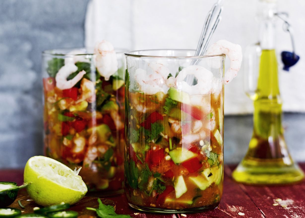 Alkupalaksi: Avokadokeittoa ja Campechen katkarapu-cocktail