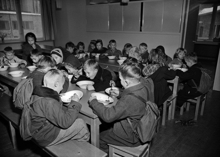 Eduskunta määräsi, että kaikkien kansakoulujen on tarjottava koululaisille ilmainen lämmin lounas viimeistään vuonna 1948. Oppikouluissa ruoka pysyi maksullisena.