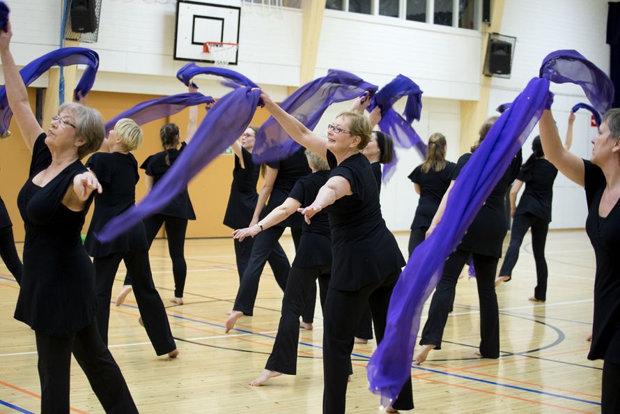 Jyväskylän Naisvoimistelijat ovat esimerkki aikuisten intohimoisesta suhtautumisesta liikkumiseen ryhmässä.