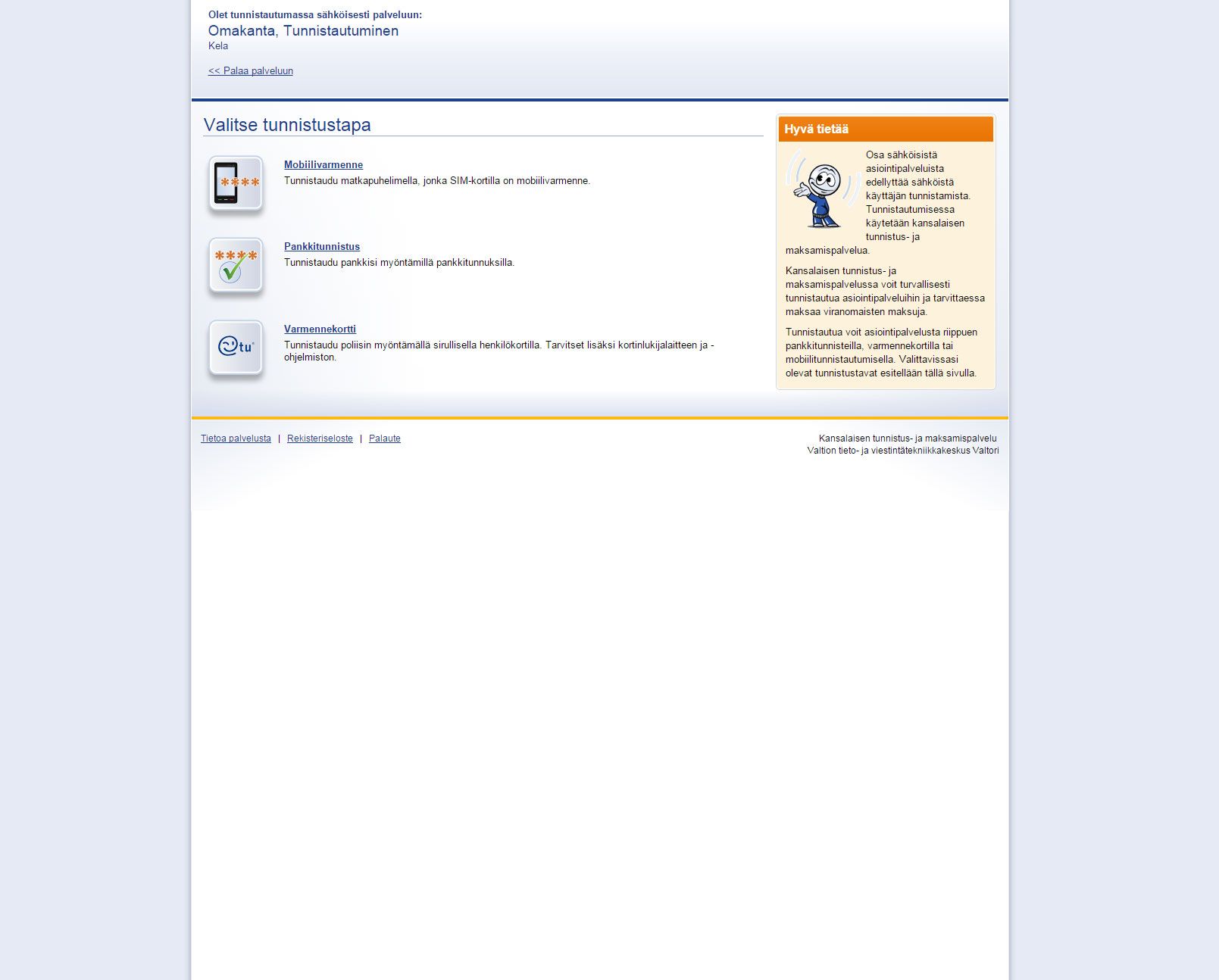 Omakanta-palvelun käyttäminen edellyttää sähköistä tunnistautumista. Useimmille käyttäjille helpoin tapa on varmaankin verkkopankkitunnusten käyttö