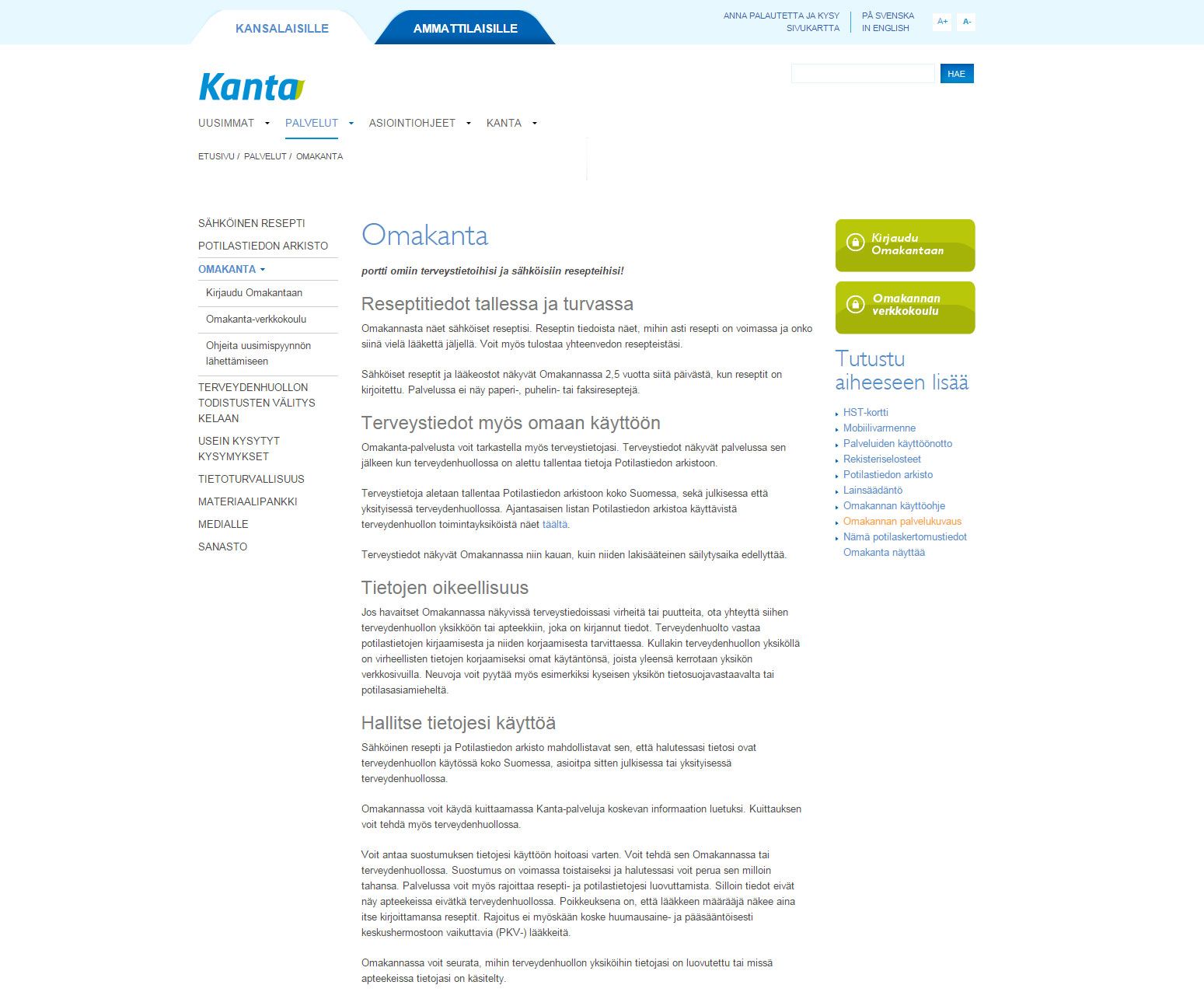 Me asiakkaat pääsemme järjestelmään Omakanta-palvelun kautta. Sitä on helppo käyttää, vaikka byrokraattinen kieli vähän häiritseekin.