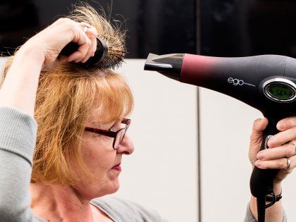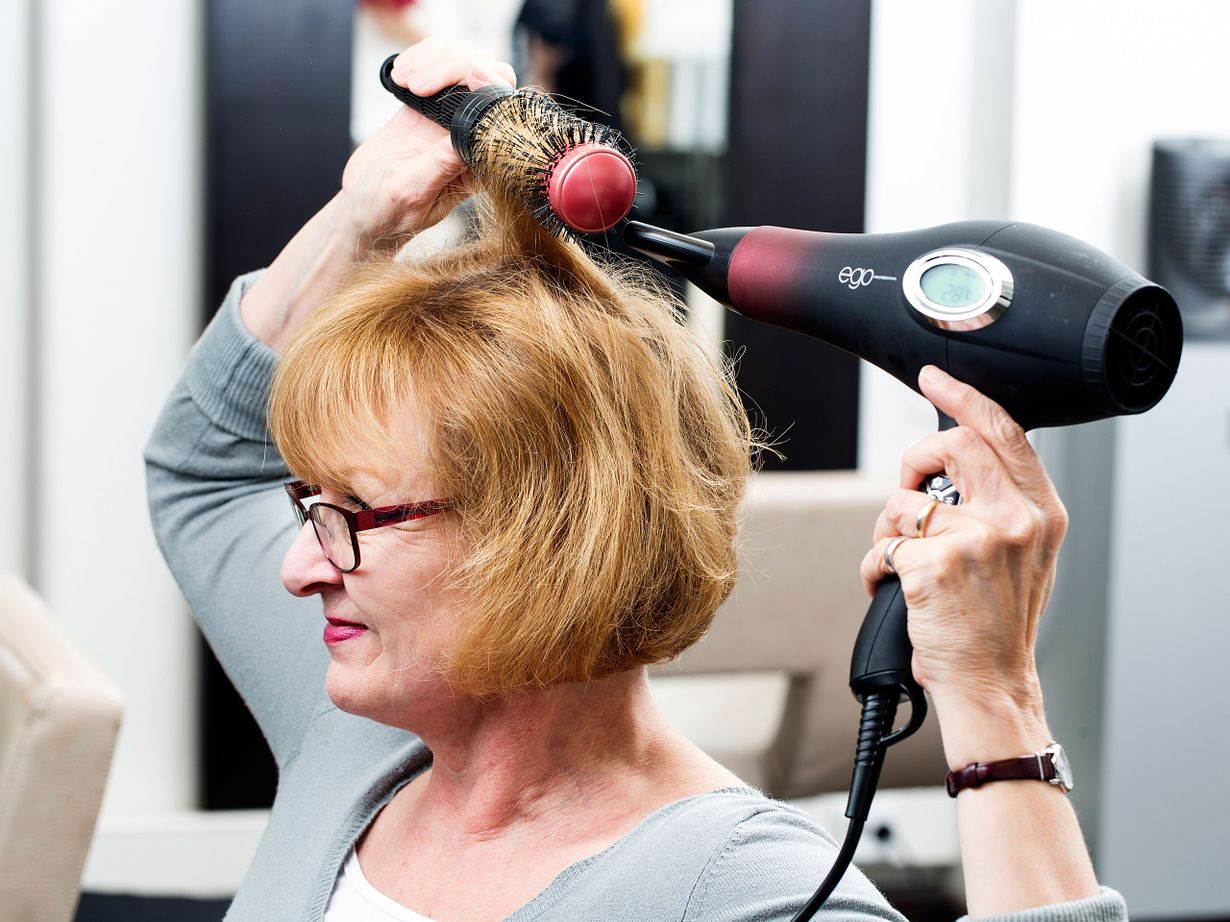 Hiukset pyörähtävät harjan ympärille tottuneen napakasti. IdHairin kouluttaja-kampaaja Jenni Ruponen myöntää, että hän on aikoinaan kampaajakoulussa harjoitellut hiusten föönaamista päiväkausia. Tekniikkaa ei siis opi hetkessä, mutta hiljalleen harjoitellen harja alkaa pyöriä amatöörinkin käsissä tottuneemmin.