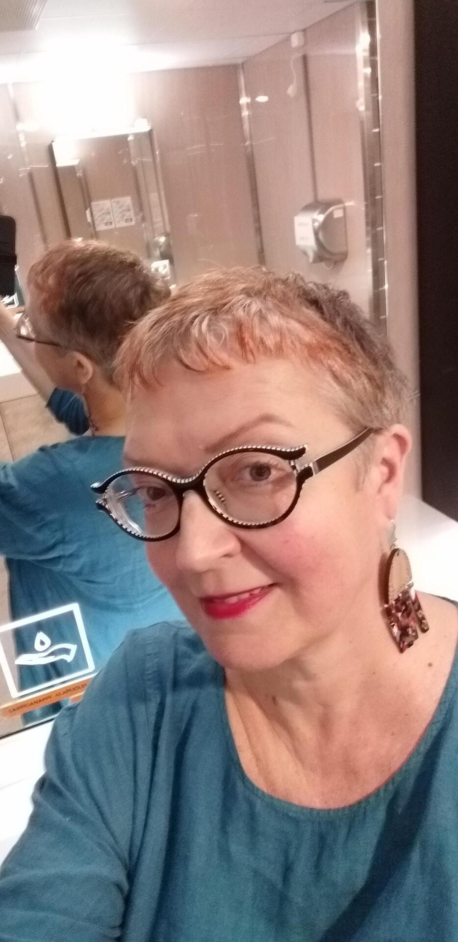 Minulla on uusi aika kampaajalle heinäkuun alussa. Katson itseäni peilistä, kun kampaaja leikkaa hiukseni vielä lyhyemmiksi. Yhtään punaista hiusta ei enää näy.