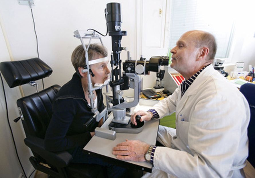 Espoolainen liikenneopettaja Tuulikki Sepänmaa istuu dosentti, silmätautien erikoislääkäri Osmo Karin vastaanotolla ja kertoo oireistaan.