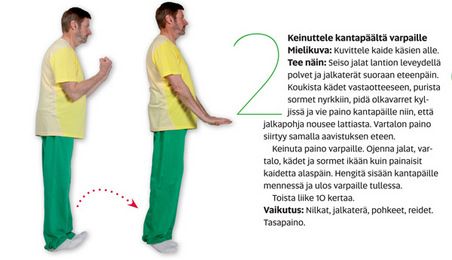 Tasapainoon vaikuttavat eniten nilkkojen, polvien, lonkkien ja selän kunto. Jalkaa ei tarvitse saada niskan taakse, mutta voima ja joustavuus ovat välttämättömiä jokapäiväisen elämän tarpeisiin.