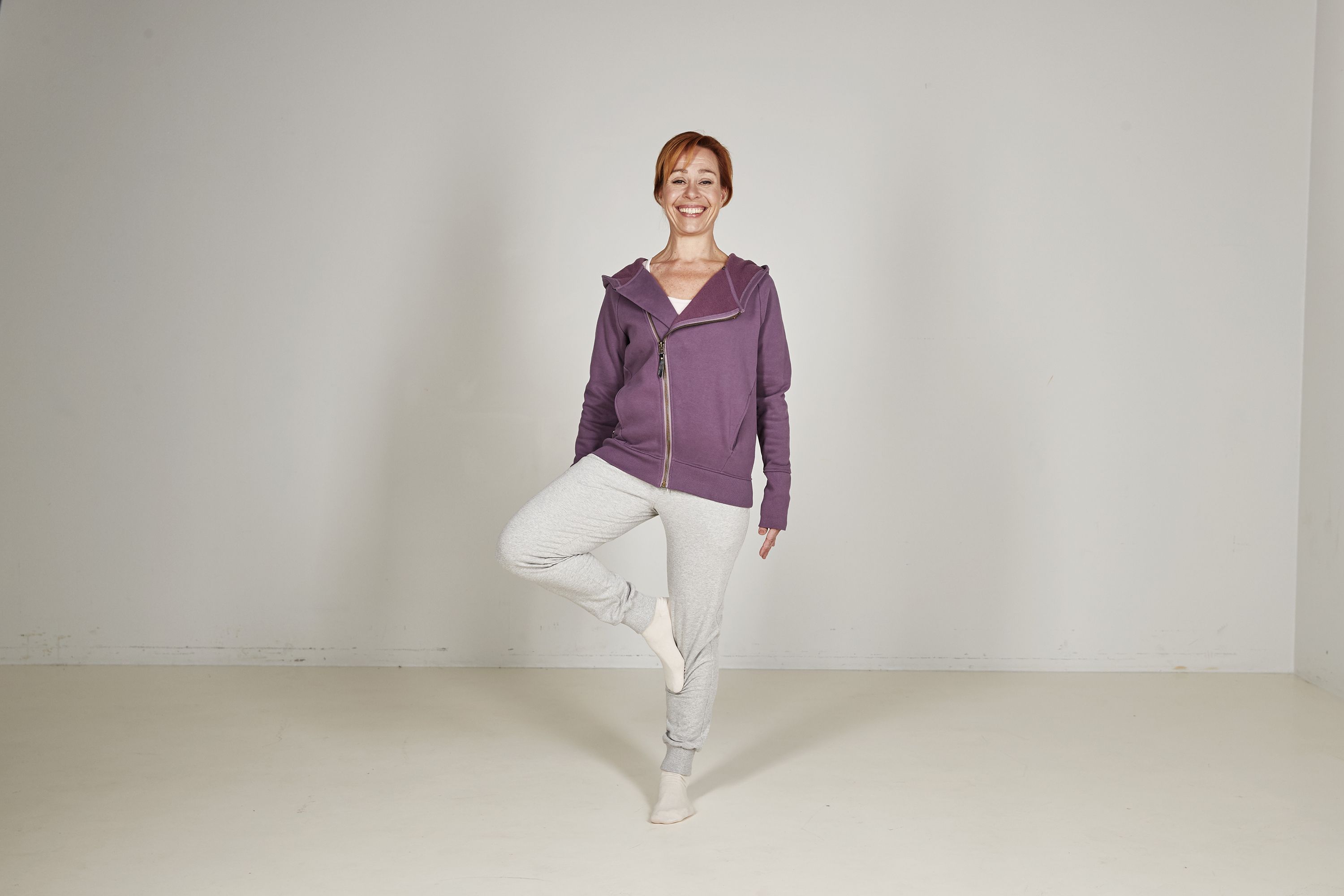 Tee liike kummalla jalalla tahansa. Nosta kantapää toisen jalan polvitaipeen korkeudelle. Jalkaterä lepää säären sisäsivua vasten ja polvi on kiertyneenä ulospäin. Pyri seisomaan liikkumatta.