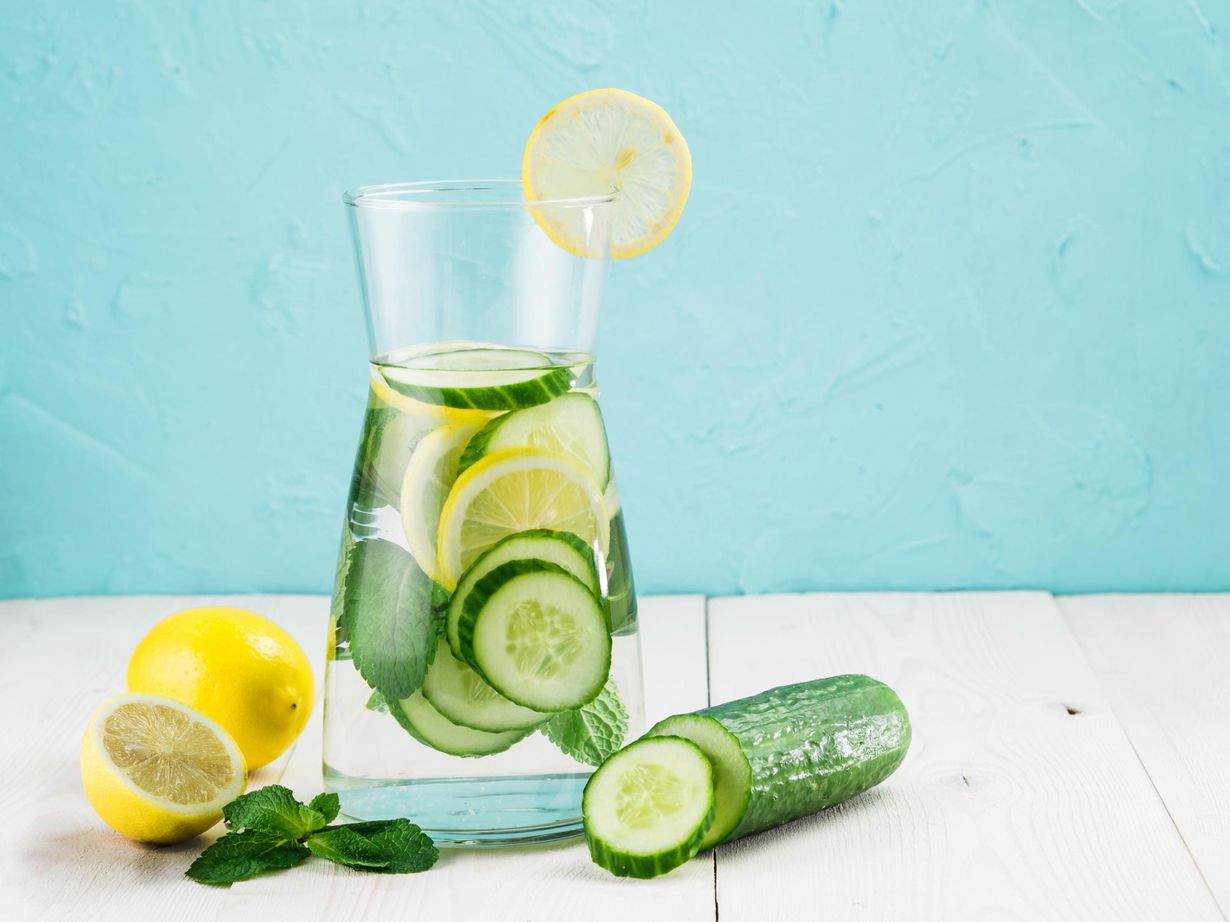 Vesi on parempi janojuoma kuin mehut ja sokeroidut mehukeitot, jotka nostattavat verensokeria vauhdilla. Mehut voi korvata itse tehdyillä makuvesillä: laita vesikannuun marjoja, kurkkua tai yrttejä. Myös tee on hyvä, koska se ei kuluta hampaita.