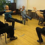 Jos ei esimerkiksi pysty istumaan lattialla, voi istua tuolilla tai käyttää tyynyjä hyväkseen.