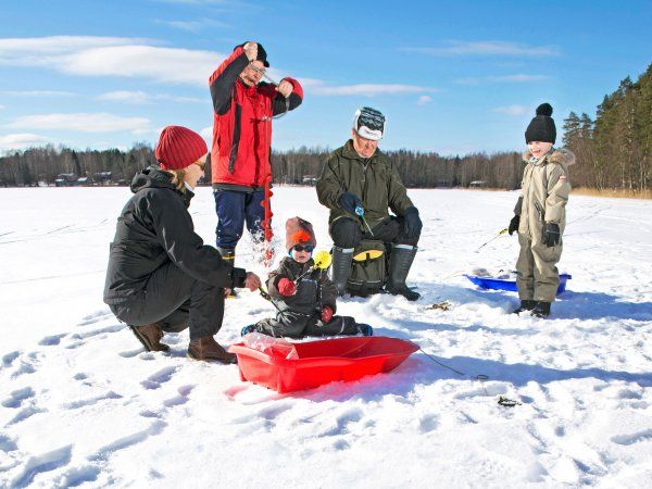 Pilkkimisestä pystyy nauttimaan ihan vauvasta lähtien. Minulla on ollut vaununkoppa pulkassa mukana ja kesken pilkin imetin.