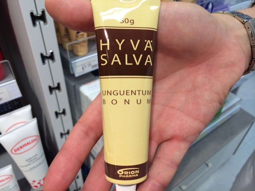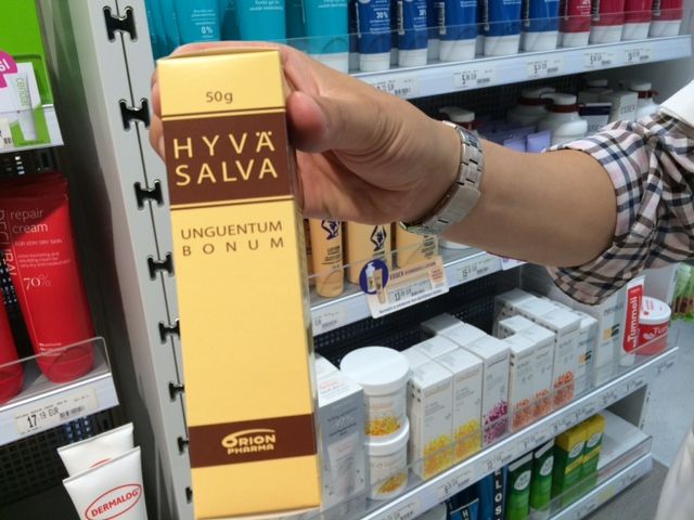 Myös hyvän tuoksuinen Hyvä Salva seisoo jykevästi apteekin hyllyllä edelleen. Sen rinnalla ovat myös muut sinkkivoiteet ja -pastat.