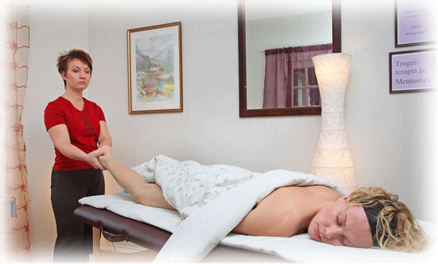 Makaan hoitopöydällä tai pikemminkin kellin. Trager-terapeutti Virve Mikkola heiluttelee jalkaani pehmein liikkein. Hän tuntuu saavan sen elämään ihan omaa elämäänsä. Välillä Virve kehottaa keskittämään hengityksen johonkin tiettyyn paikkaan. Huomaan unohtavani koko jalan.