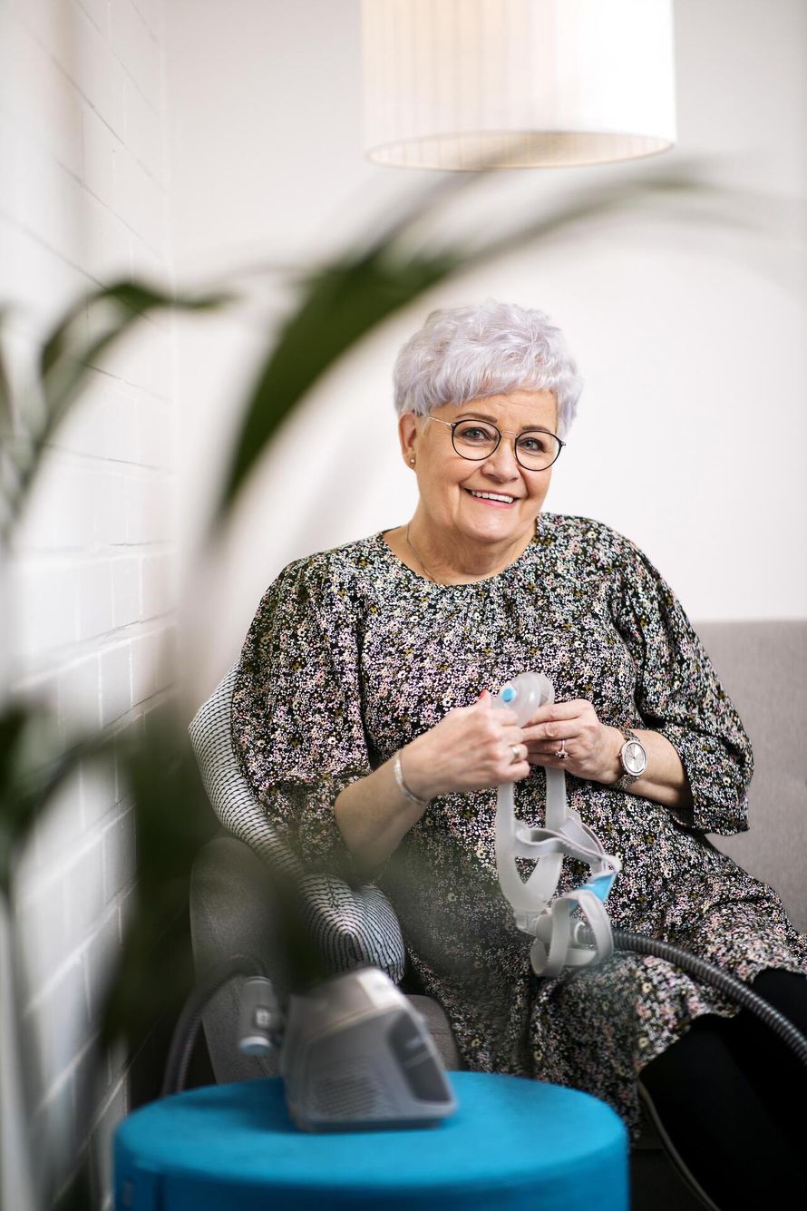 – Olen tunnollinen ja käytän laitetta joka yö. Katkoksia ei tule lähimainkaan niin kuin ennen, tuskin lainkaan, hän kertoo.
