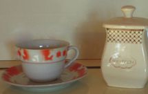 Löysin vanhempieni jäämistöstä kuusi paria Arabian kahvikuppeja ja kuusi maustepurkkia. Haluaisin tietää milloin nämä on tehty ja minkä nimiseen sarjaan kuuluvat, sekä kuka on suunnitellut. Tämän hetken arvokin olisi mukava tietää.Eero