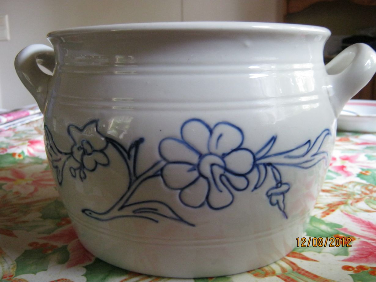 Omistan kuvan voipytyn, jonka tilavuus on viisi litraa. Mikä tällaisen pytyn arvo on? Se ei ole juurikaan ollut käytössä. Pohjassa merkki B4.Marja-Leena