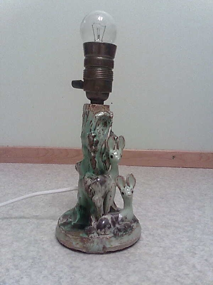 Bambiveistos on joka tapauksessa niin tyypillistä 1950-luvun Suomea kuin olla voi! Tekijästä riippumatta lampun arvo on ehkä noin 100 euroa, jos esine on aivan ehjä.