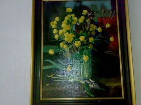 Kukka-asetelmakin on toki taitavasti maalattu, vaikka en kyllä tänne asti erota, onko siinä ruusuja vai kulleroita. Kukka-asetelman päivän hinta on 250–300 euroa.