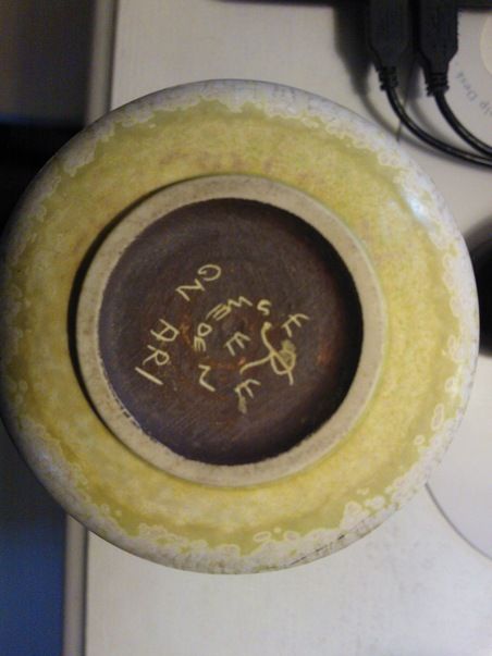 Vaasi tulee Ruotsista Rörstrandin tehtaalta. Tekijä on keramiikkataiteilijaja Gunnar Nylund ja valmistusajankohta 1930-luku. Maljakko on hyvää ajan muotoilua.