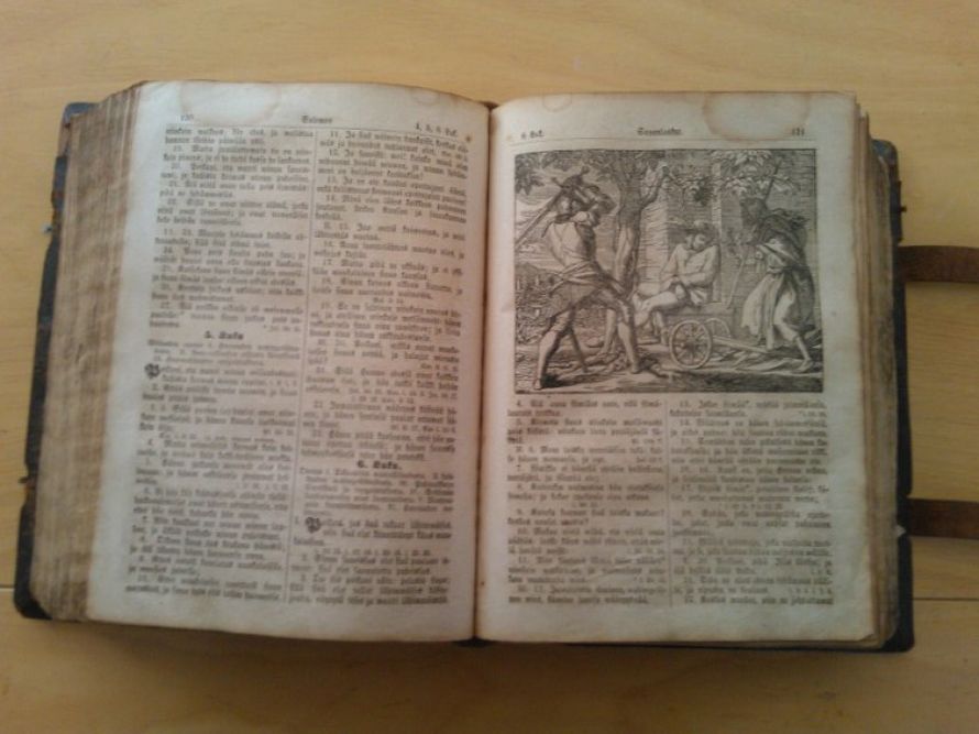 Vanhojakin Raamattuja on Suomen kodeissa yllättävän paljon, koska niitä kohtaan tunnetaan yhä kunnioitusta, eli niitä ei ole yleensä heitetty roskikseen.