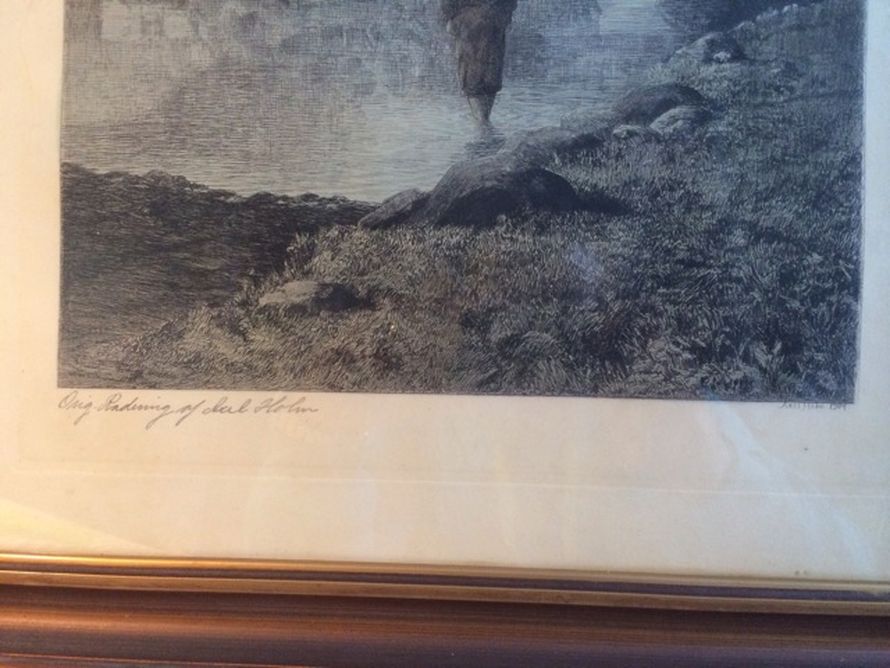Tietyn arvon takaa myös se, että vedoksessa on lyijykynäsigneeraus: Orig. Radering af Axel Holm eli A.H:n alkuperäinen etsaus – se ei siis ole painokuva.