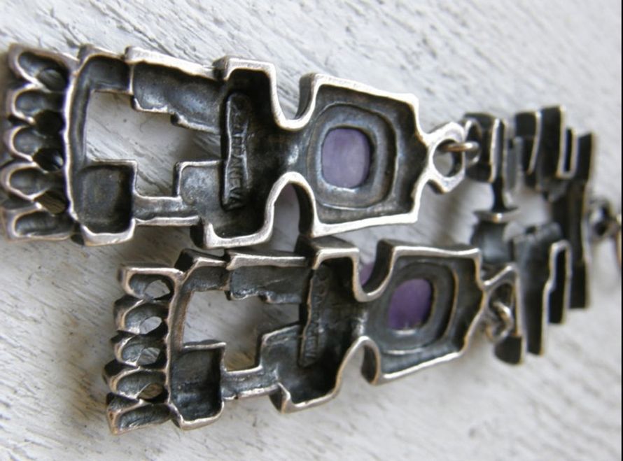 Mikä on arvoinen hopeinen riipukseni on? Suunnittelija on Pentti Sarpaneva, takana leima 830, kaksi ametistia. Riipuksen paino 46 g.