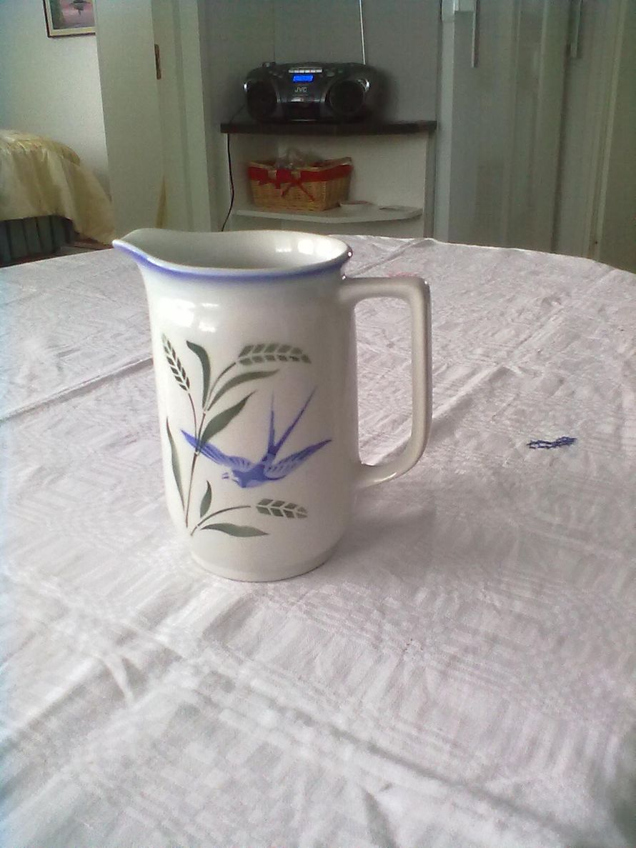 Sininen pääskynen kuuluu yhtenä suureen 1930–40-lukujen maalaisromanttiikkaa henkivien aiheiden sarjaan, joita Euroopan suurin posliinitehdas Arabia siihen aikaan käytti arkiesineidensä koristelussa: tuulimyllyjä, purjelaivoja, kukkia, hedelmiä, metsäneläimiä, lintuja, hyönteiisiä...