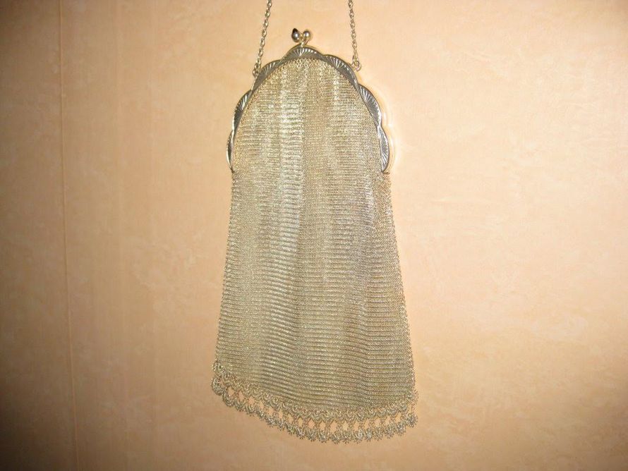 Laukkua täydentää pieni kukkaro, korkeus 6,5 cm ja leveys 5 cm. Verkko on huomattavasti karkeampaa tekoa. Kukkaron kehyksessä on kaksi leimaa rinnakkain: 830 ilman kehystä sekä kirjaimet ELW. Kumpikin on ehjä. Kukkaroa minä jossain vaiheessa käytin ihan päivittäin. Vankkaa tekoa sillä useinhan pieni kukkaro oli pullollaan kolikoita.