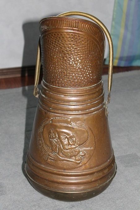 Mikähän tämä kannu on ja mihin tarkoitukseen sitä on käytetty? Mikä kannun arvo on? Esine on mielestäni kuparia. Sen korkeus on noin puoli metriä. Mitään leimoja en ole siittä löytänyt. Eiksa