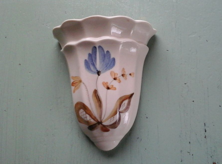 Tämä Arabian seinämaljakko herätti myös minussa mukavat muistot: siellä lapsuudenkotini olohuoneen seinällä oli lämpömittarin vieressä lähes samanlainen seinävaasi, jossa vuodenajasta riippuen oli joskus kuivakukkia, joulun aikaan ehkä pieni kauralyhde, pääsiäisenä pajunoksia tipusineen jne. Myöhemmin siinä taisi olla muovinen kestokukka.