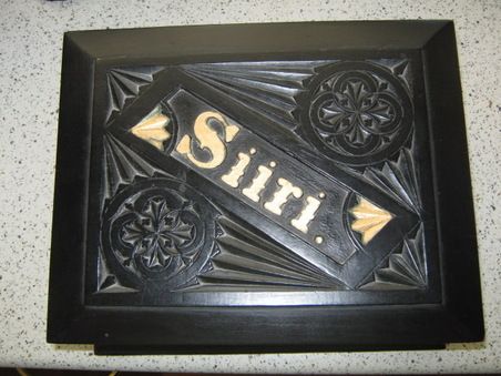 Nämä vanhat puutyöt (keittiövälineet, rasiat, lippaat, kousat, veistokset, jne.) ovat lähes aina taitavan kotitarvenikkaroijan aikaansaannoksia. Niitä on tehty sekä tarpeeseen että lahjaesineiksi – erityisesti mielitietyille, morsiamille, nuorille vaimoille. Tämänkin rasia on saanut Siiri – kuka sitten lieneekään.
