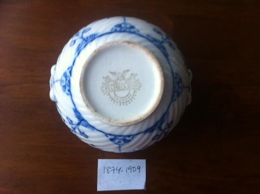 Minulla tällainen sokerikko Villeroy & Bochilta, ojka sijoittuu 1874–1909 aikaan leiman mukaan.