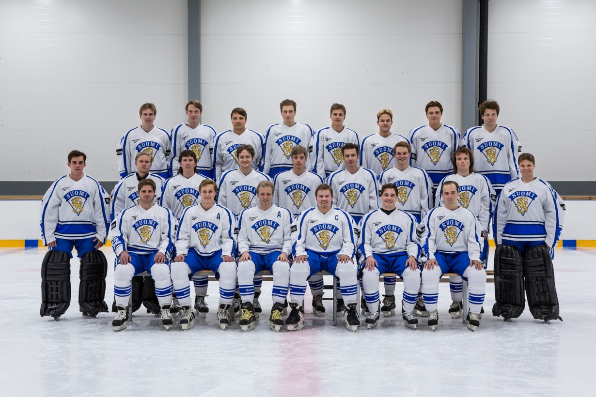 Keskirivissä vasemmalta: Tammi (Lauri Tilkanen), Sulander (Henri Nyqvist), Lehterä (Roman Tiinus), Kapanen (Mikko Laine), Palo (Valtteri Honka), Helminen (Sebastian Rejman), Lehtinen (Kustaa Tuohimaa), Kiprusoff (Karlo Haapiainen), Myllys (Hannes Suominen).