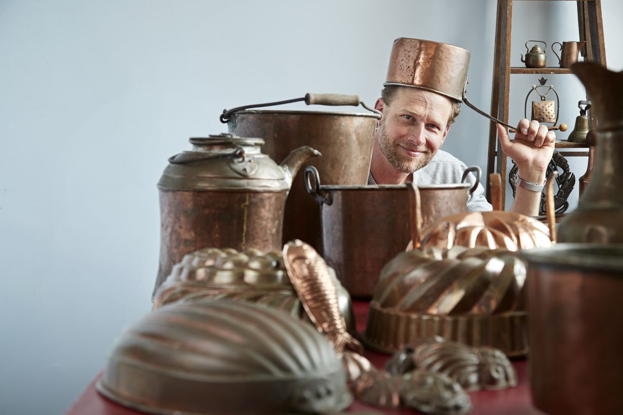 Lorenz Backman kerää kupariastioita. Ne ovat myös käytössä arkisin.