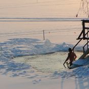 Avanto toisensa jälkeen rikkoo jään pinnaan. Lopulta puolisot huhuilevat toiselleen vastarannoilta. Leikkimielinen kisa on nytkin käynnissä.