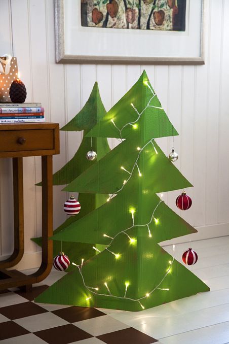 Kävyillä, oksilla tai paperikoristeilla rakennat uudenlaisen joulupuun, joka mahtuu pieneenkin tilaan.