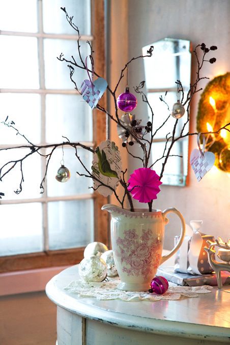 5. Kaada kannun pohjalle hiekkaa, upota oksat paikalleen ja koristele ne.