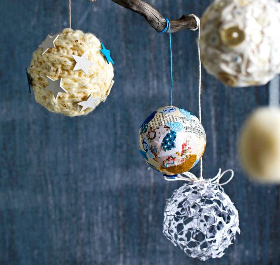 Nämä joulupallot syntyvät helposti virkkaamalla, huovuttamalla tai paperista tai napeista askartelemalla.