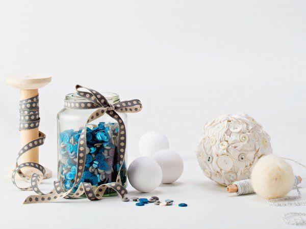 Kiinnitä valkoisia nappeja nuppineuloilla palloon.