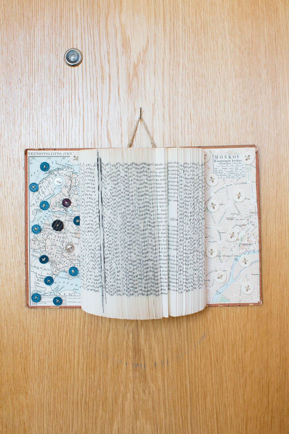 Ovikoriste on tehty vanhasta kirjasta taittelemalla.