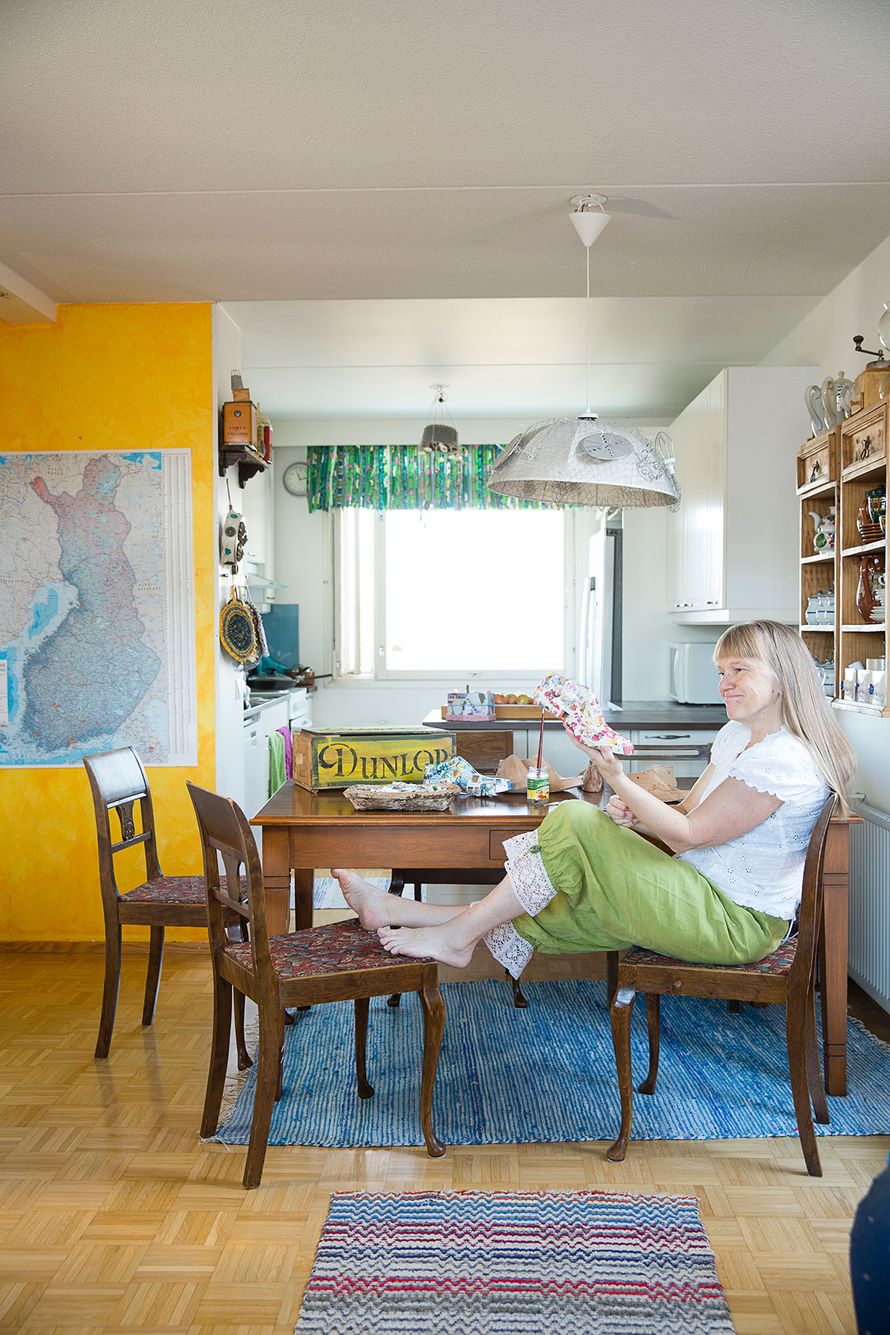 ET-lehden toimittajan koti on täynnä omia ja muiden käsitöitä. Niillä syntyy kotoisan rönsyilevä ja hiukan boheemi tunnelma.