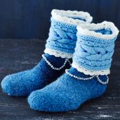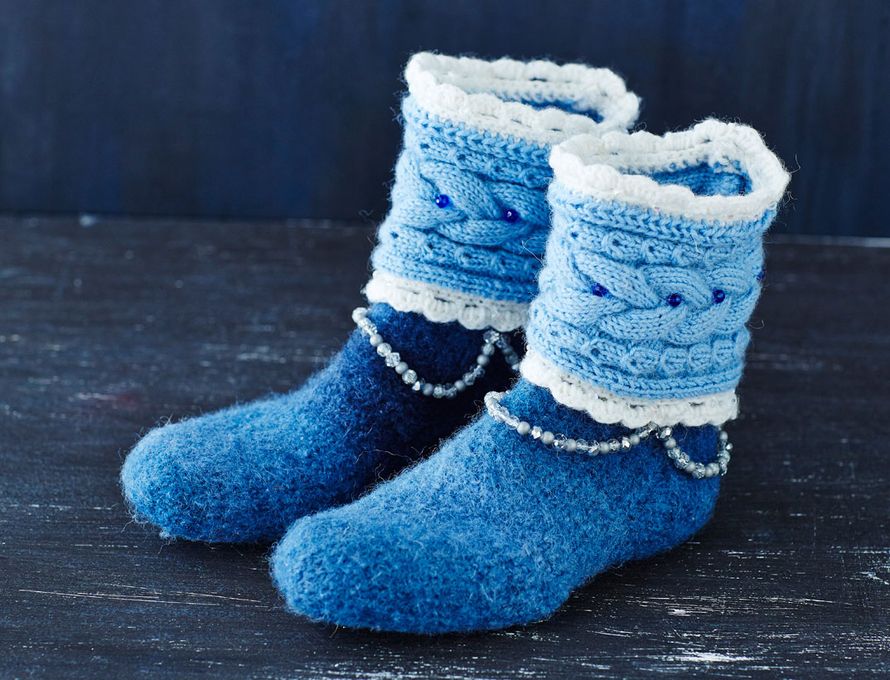 Kiinnitä reunukset ompelemalla huovutettujen sukkien varsiin niin, että huovutettu varsi jää piiloon.