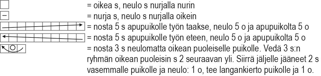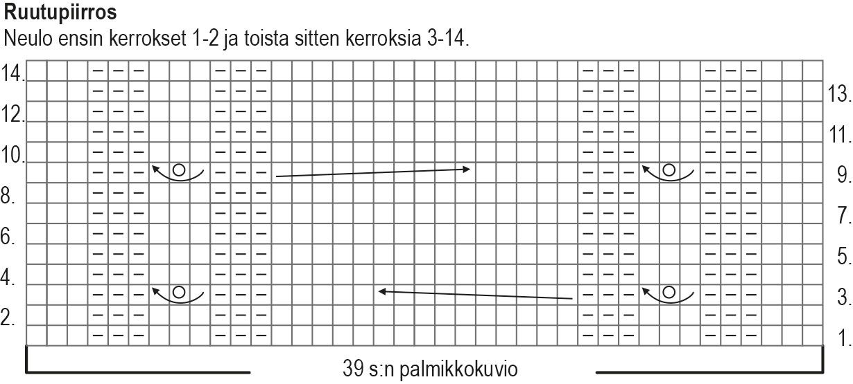 Palmikkoneule: neulo ruutupiirroksen ja ohjeen mukaan.