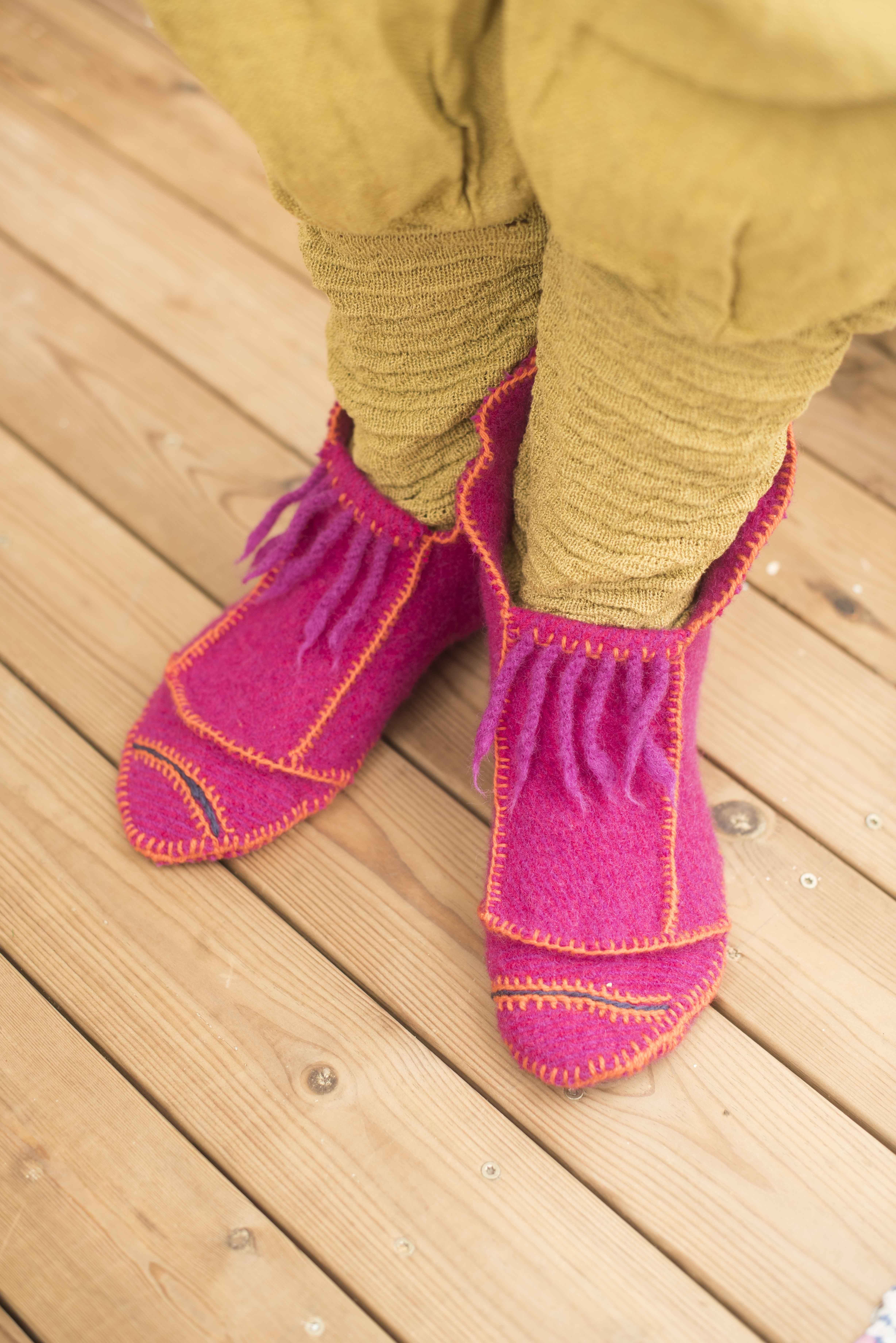 Tossu on mukava ja lämmittävä lahja ystävälle. Vanhoista huovista tehdyt tossut voi kirjoa ja koristella monin erin tavoin.