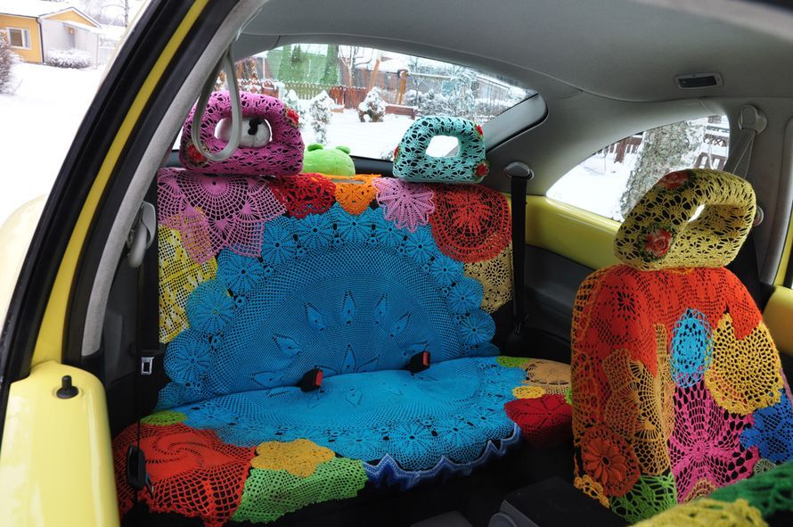 – Aluksi ompelin Beetleen kukkatrikoosta etupenkin selkänojiin suojat. Takapenkille virittelin limenvihreän Angry Birds -pyyhkeen.