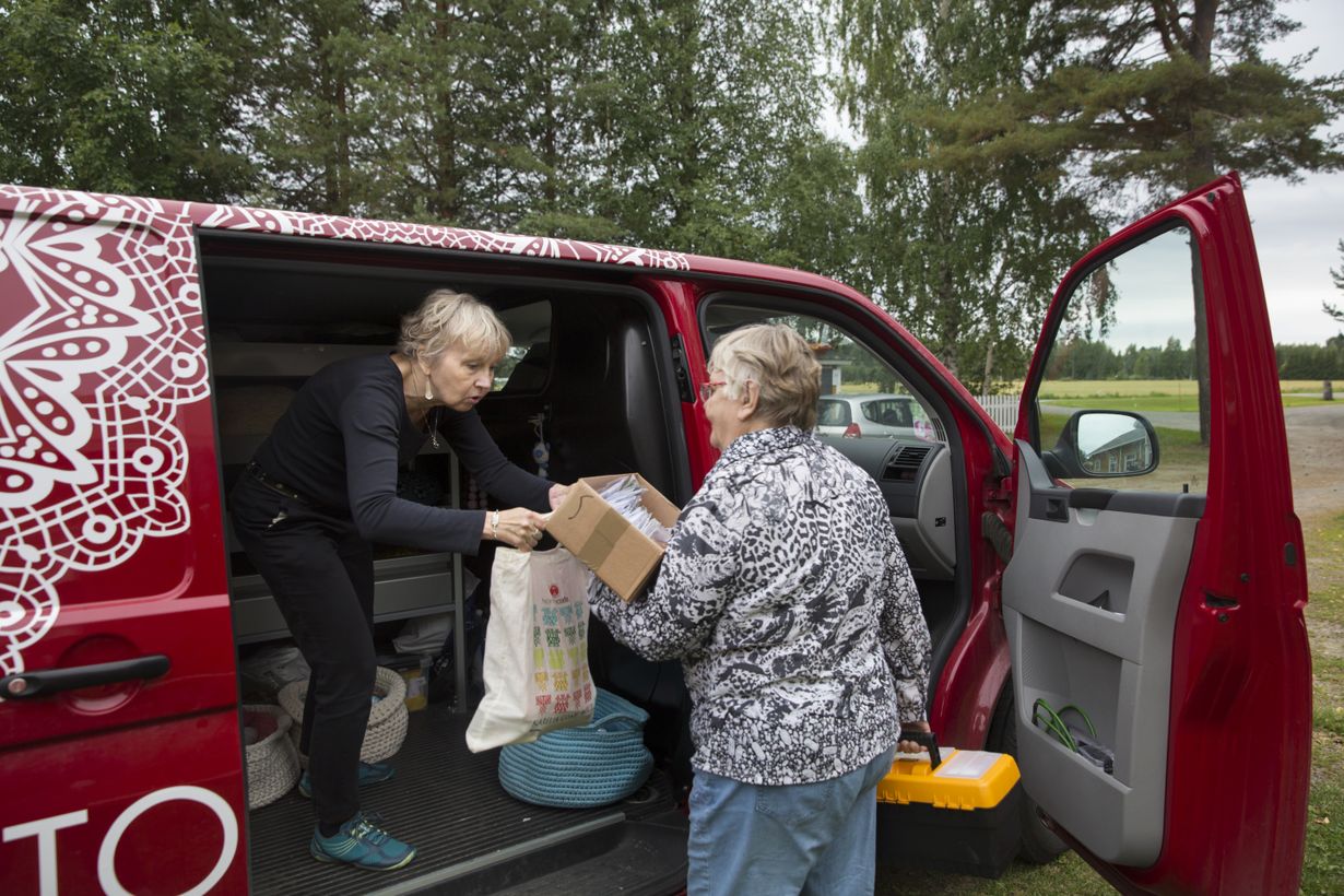 Erityisen tärkeä käsityöbussi on autottomille, mutta helpottaa se muidenkin elämää. On luksusta tilata lankoja ja matonkuteita kotikylään, kun lähimpään lankakauppaan on kymmeniä kilometrejä.